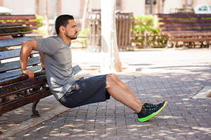 Tricep dips exercises engage the triceps muscles, but it also works the shoulders and requires strength from the core, grip and arm muscles to complete the exercise. Dips can be done on a bar or a bench, you will receive the same benefits no matter which method you choose!