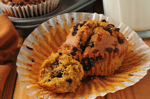 These pumpkin chocolate chip oat muffins are soft and moist. They are made with oat flour, applesauce, pumpkin puree and a few chocolate chips, making them an excellent and guilt-free dessert or breakfast.