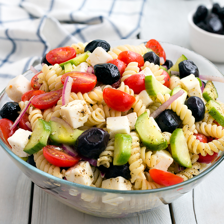 You simply can’t have a party in the summer without serving some kind of pasta salad- I don’t make the rules. This Greek Salad is light and fresh and is perfect for a Fourth of July celebration.