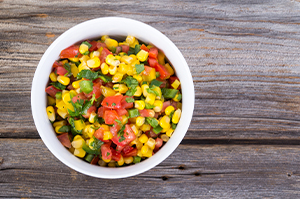 This fresh, colorful salsa pairs well with barbecued meats but is equally as tasty served with chips.